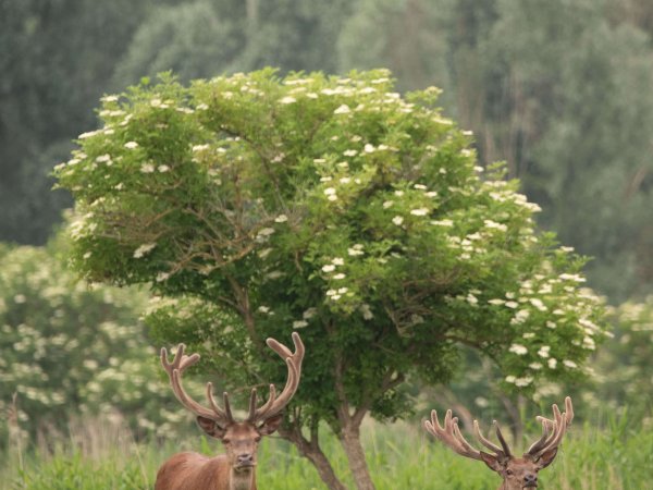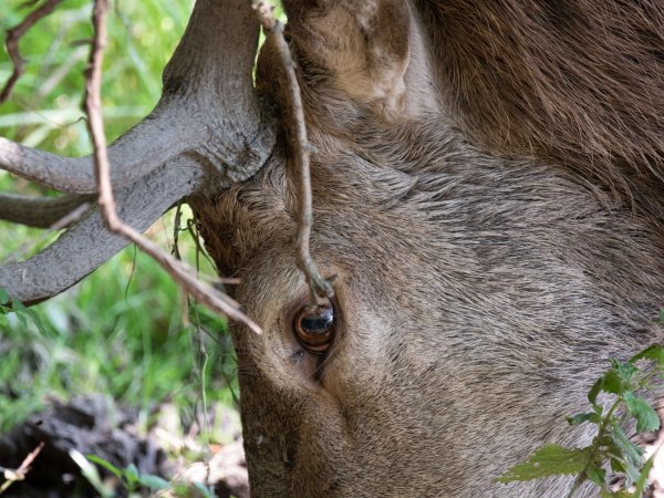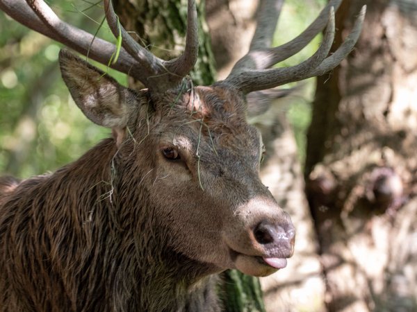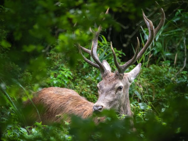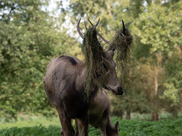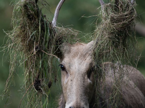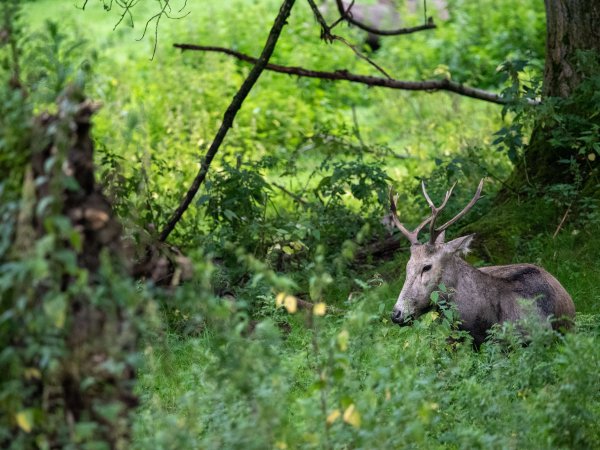 The tufted deer (Elaphodus cephalophus) is a small species of deer native to the forests of China and northeastern Myanmar. It is named for the tuft of black hair on its forehead and is also characterized by small, backward-curving antlers and prominent upper canines, especially in males.