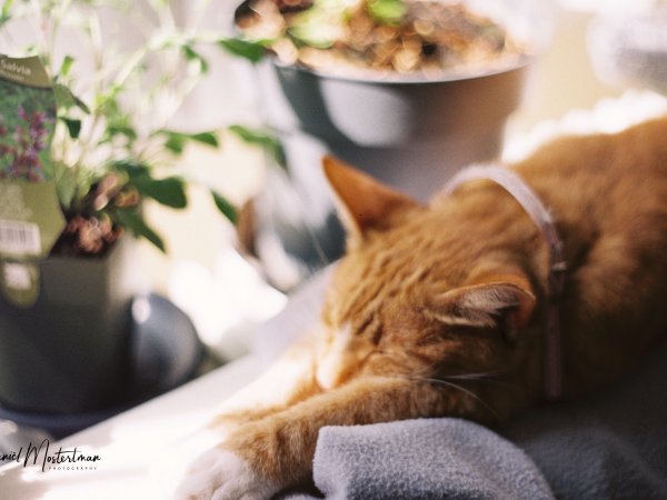 Our cat, Princess, chilling on the armrest of our couch.